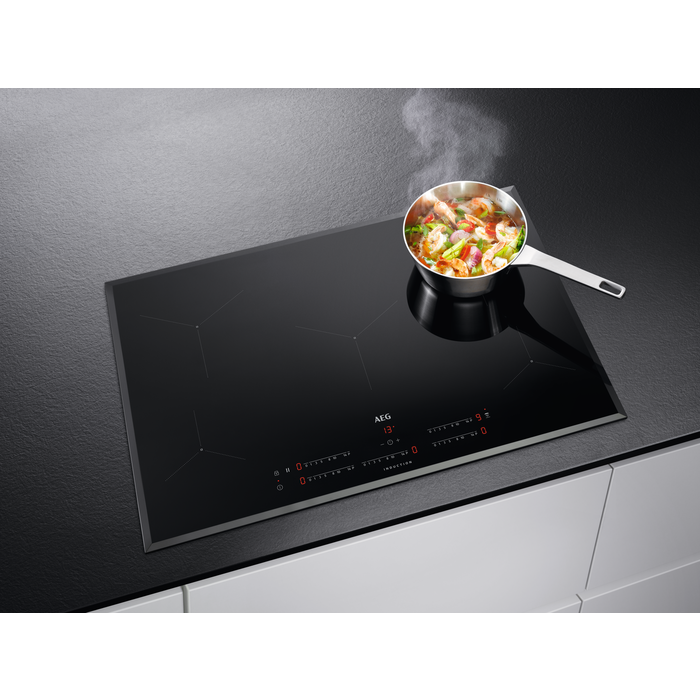 L'induction vous aide à maîtriser plus rapidement n'importe quelle technique de cuisson. Une plaque à induction chauffe plus rapidement que tout autre type de plaque de cuisson, vous pouvez donc commencer à cuisiner immédiatement. Les réglages rapides de la chaleur vous permettent de créer les meilleures saveurs et textures lors de la cuisson. HOB2HOOD® : LA HOTTE ASPIRANTE MAINS LIBRES La fonction Hob2Hood® relie la table de cuisson et la hotte aspirante. La hotte aspirante ajuste automatiquement la puissance d'aspiration en fonction de la puissance, sans lever le petit doigt. Pour une extraction puissante lors de la cuisson. Et une extraction plus silencieuse lors de la cuisson à feu doux. MOINS D'ÉTAPES ET PLUS DE CONTRÔLE AVEC DES COMMANDES TACTILES DIRECTES L'interface utilisateur des commandes tactiles directes utilise des chiffres intuitifs de 1 à 9 pour que vous puissiez régler instantanément la bonne température sans avoir à appuyer plusieurs fois sur les boutons plus et moins. CHALEUR PLUS RAPIDE POUR UNE VITESSE SUPPLÉMENTAIRE AVEC POWERBOOST Vous n'avez plus besoin d'attendre que l'eau bout. La fonction PowerBoost fournit un boost de chaleur instantané, l'eau bout en moins de 90 secondes. Elle est parfaite pour des tâches telles que faire bouillir rapidement une grande casserole d'eau.