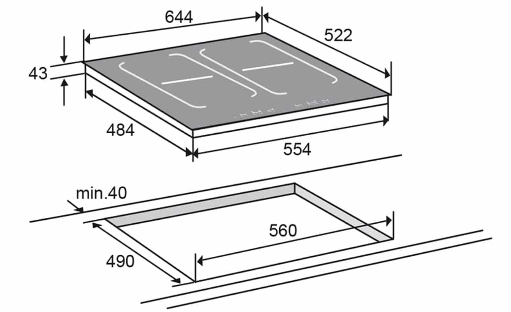 PRODUIT VENDU AVEC DEFAUTS D'ASPECTS : TRACE D'USURE SUR UN FEU TABLE DE CUISSON À INDUCTION AVEC BRIDGE INDUCTION (64 CM)
