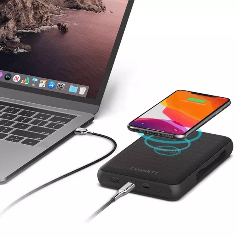 Le ChargeUp Edge+ 27K offre une puissance et une connectivité de qualité professionnelle avec la capacité de maintenir tous vos appareils alimentés en toute simplicité. Cette banque d'alimentation dispose d'une incroyable puissance de sortie totale de 72 W (max), permettant d'alimenter une large gamme d'ordinateurs portables USB-C et de charger rapidement les tablettes et les smartphones. Une classe au-dessus, l'Edge+ 27K est la nouvelle génération de notre gamme de banques d'alimentation USB-C Pro PD primées, avec la polyvalence nécessaire pour charger quatre appareils simultanément, y compris un appareil via la charge sans fil Qi 10 W. Solution de charge tout-en-un Le ChargeUp Edge+ 27K dispose de 4 options de sortie de charge (72 W max) vous permettant de charger une large gamme d'appareils, notamment des ordinateurs portables, des tablettes, des smartphones, des écouteurs Bluetooth, des appareils de jeu portables et des manettes de jeu Bluetooth avec chargement USB-C. Cette banque d'alimentation a même la capacité de charger 4 de vos appareils à la fois. Chargez un ordinateur portable jusqu'à 16 heures Les ordinateurs portables vous offrent la flexibilité de travailler quand et où vous le souhaitez, mais vous pouvez désormais maximiser cette liberté en l'associant à la solution d'alimentation portable ultime. Le ChargeUp Edge 27K peut charger un ordinateur portable USB-C n'importe où, pendant 16 heures maximum. Notre technologie Power Delivery de 60 W permet à cette batterie externe de générer quatre fois la puissance standard de 15 W pour les ports USB-C. Chargement rapide sans fil Il suffit de poser n'importe quel appareil prenant en charge la charge sans fil Qi sur la batterie externe et il commencera immédiatement à se charger. Aucun câble n'est requis, grâce à notre technologie de charge rapide sans fil de 10 W, des appareils tels que vos Air Pods ou votre smartphone à chargement sans fil seront restaurés en un rien de temps.