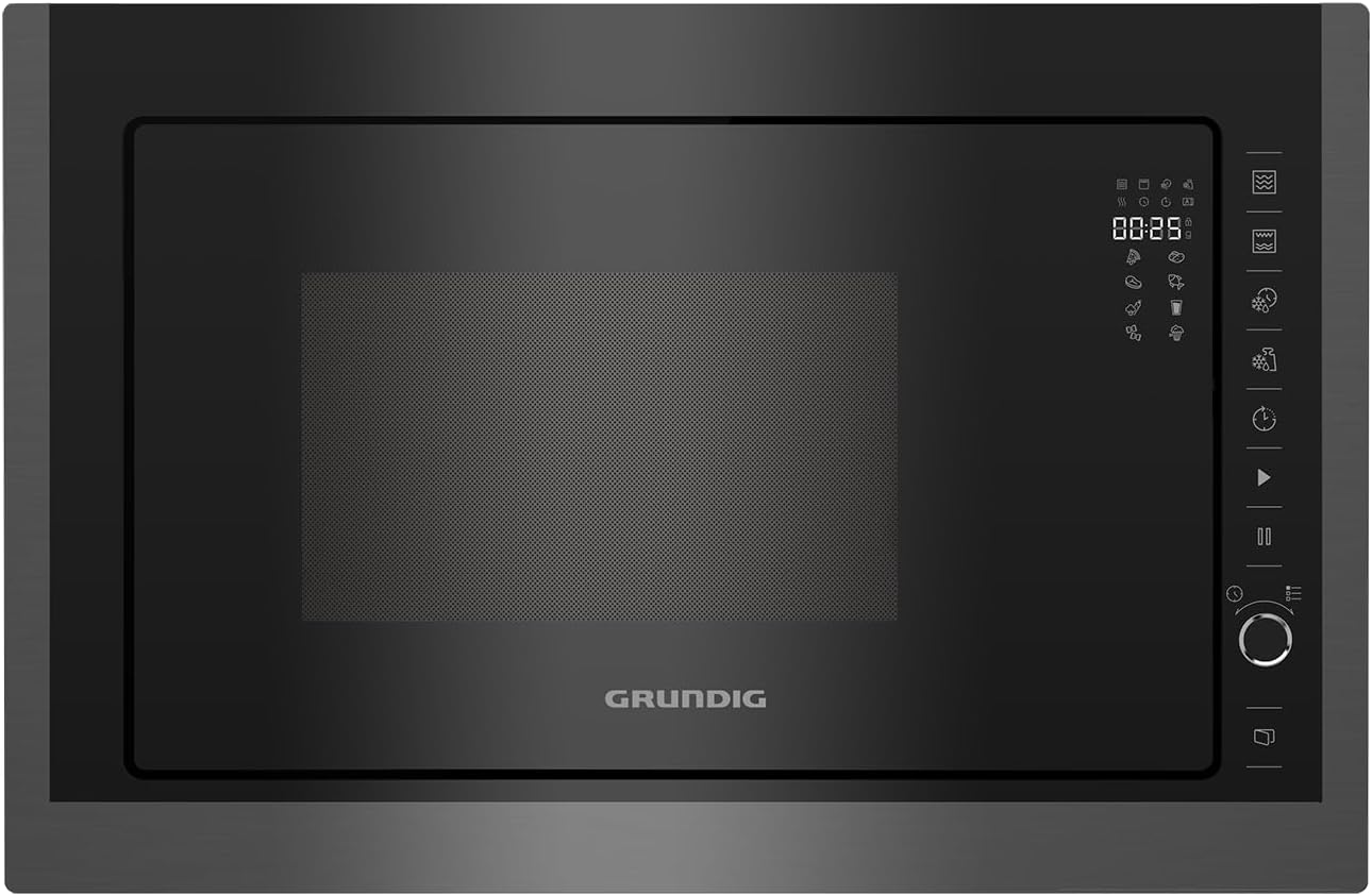 Le Grundig GMI11311DX est un micro‑ondes encastrable avec fonction grill, au design moderne en inox foncé (Dark Inox). Il offre une capacité de 25 L, idéale pour des plats familiaux, et propose 8 programmes automatiques pour simplifier la cuisson. Avec une puissance de 900 W pour la cuisson micro‑ondes et 1 000 W pour le grill, il permet de réchauffer, griller et décongeler rapidement avec des résultats homogènes. Son installation s’intègre parfaitement dans une niche standard de cuisine, et la sécurité enfant garantit un usage serein.