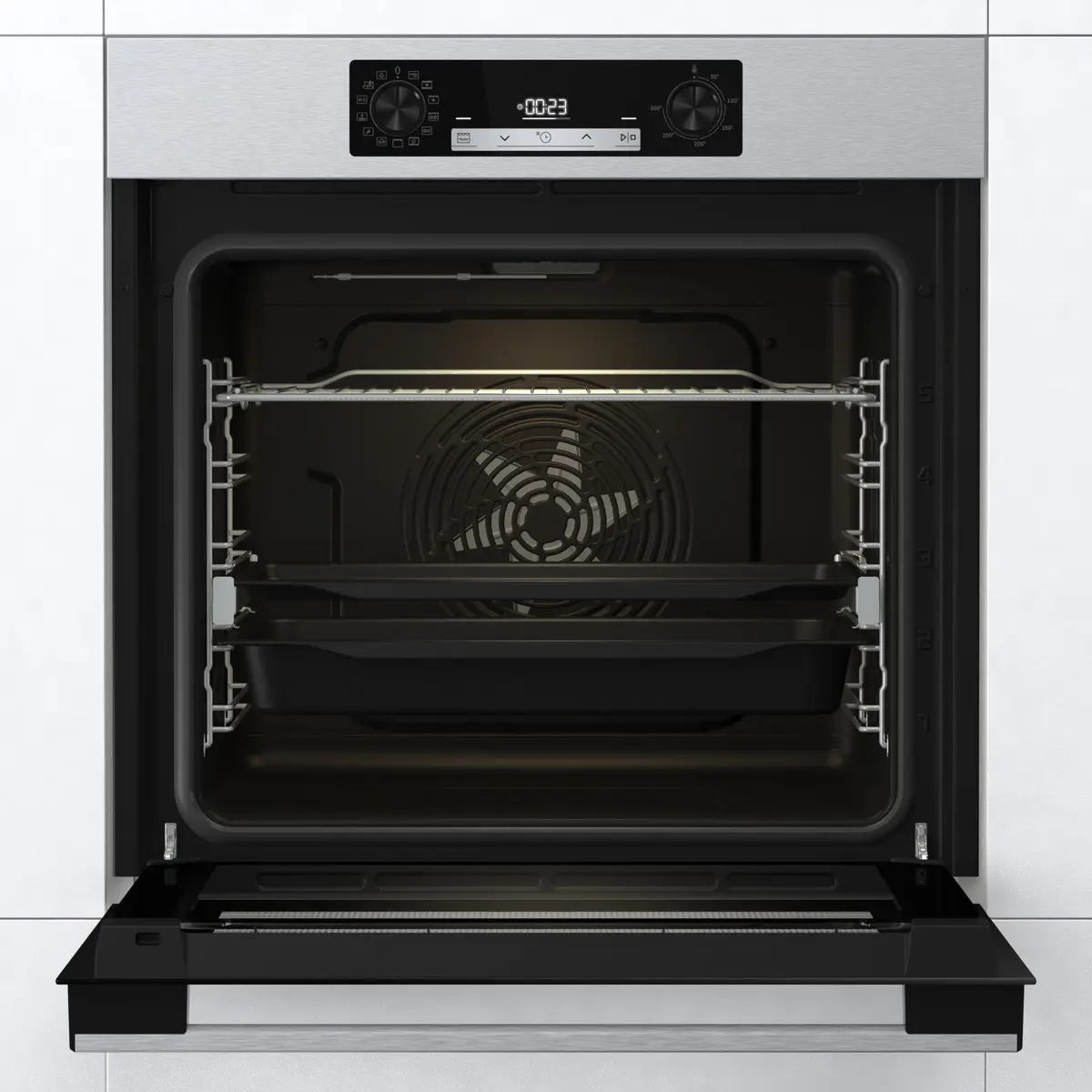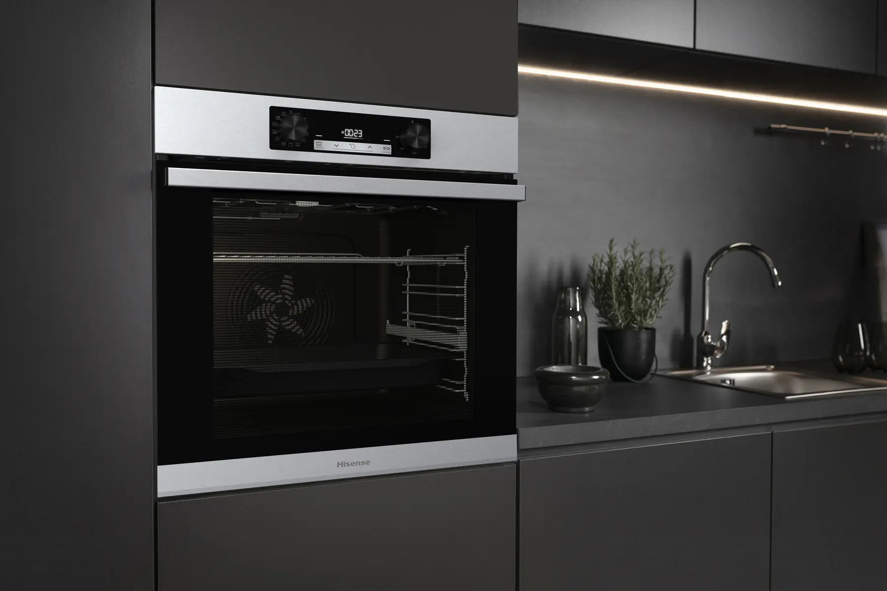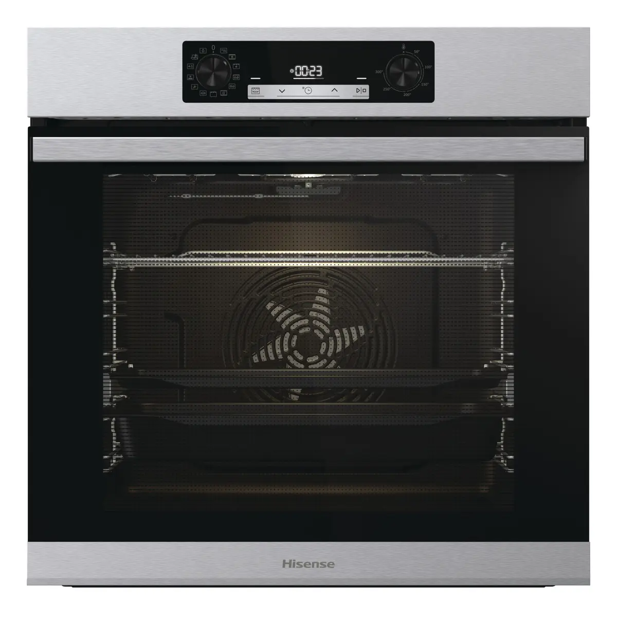 Le Hisense BSA65226AX est un four encastrable multifonction en inox anti-trace, doté d’une cavité XXL de 77 L. Il offre une cuisson polyvalente avec ventilation thermique, ajout de vapeur, mode Air Fry, mode pizza jusqu’à 300 °C, et préchauffage rapide en environ 6 minutes. L’entretien est simplifié grâce au nettoyage à la vapeur AquaClean et l’émail EcoClean. La porte froide à double vitrage garantit sécurité et confort, tandis que les commandes par boutons escamotables et écran LED assurent une utilisation intuitive.