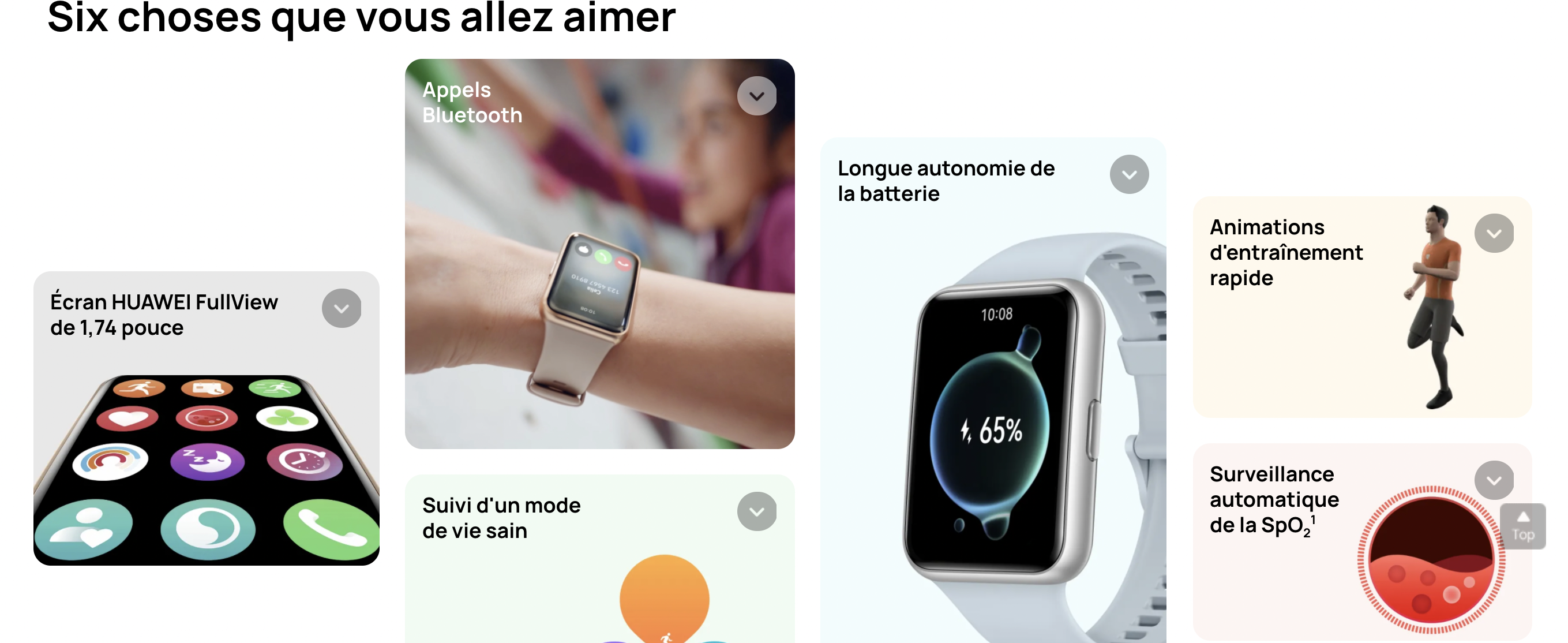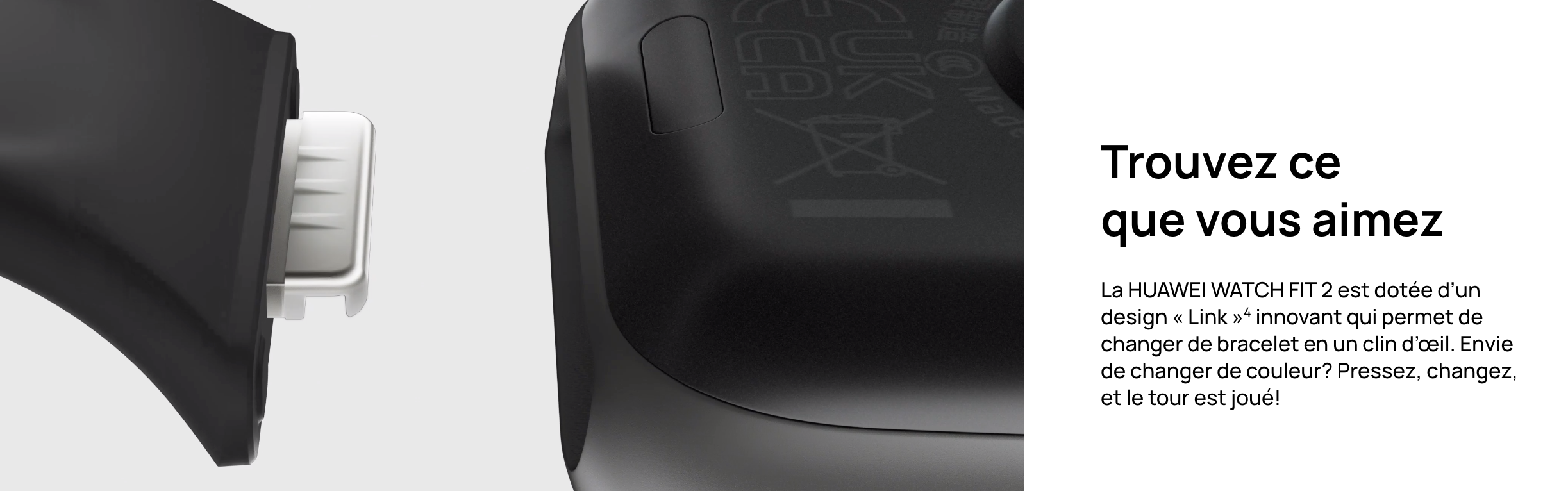 PRODUIT VENDU AVEC DEFAUT D’ASPECT : Plusieurs petites rayures sur le verre. Huawei Watch Fit 2 6 choses que vous allez aimer. Un plaisir pour les doigts et les yeux : Avec son écran AMOLED de 1,74 pouce, parfaitement encadré par des bords très étroits, la HUAWEI WATCH FIT 2 vous offre exactement ce dont vous avez besoin d’un simple mouvement du poignet. Pour les entraînements comme pour les appels entrants, tout est affiché de manière naturelle et conviviale. Restez mobile, restez connecté : La HUAWEI WATCH FIT 2 n'est pas seulement une montre, c'est aussi un véritable centre de communication qui prendra en charge les appels Bluetooth, les réponses rapides aux messages et l'importation de contacts! Où que vous alliez, vous pouvez être tranquille en sachant que vos appels arriveront à votre poignet et que vous pourrez soit y répondre, soit les rejeter. Un gestionnaire de santé polyvalent : La HUAWEI WATCH FIT 2 offre des fonctions intelligentes de haut niveau pour gérer votre santé, notamment la surveillance de la SpO2, de la fréquence cardiaque, du sommeil et du stress. Une batterie qui ira loin : Une charge complète de votre montre vous permettra de tenir jusqu'à dix jours en usage normal ou sept jours en usage intensif, pour une écoute sans limites et un quotidien épanoui et sans souci! Vous pouvez même obtenir une journée entière d’utilisation avec une charge de cinq minutes seulement. Prête à vous faire bouger : Avec des animations de fitness exclusives et des étirements d’échauffement guidés par la voix pour sept entraînements courants, dont la course à pied, le vélo et la natation, vous pouvez tirer le meilleur parti de chaque entraînement. Un gestionnaire de santé polyvalent : La HUAWEI WATCH FIT 2 offre des fonctions intelligentes de haut niveau pour gérer votre santé, notamment la surveillance de la SpO2, de la fréquence cardiaque, du sommeil et du stress.