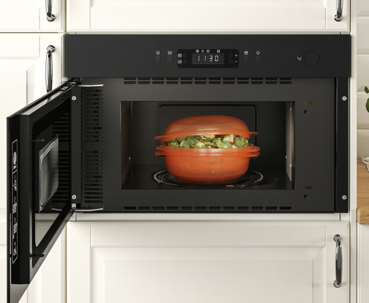 Produit vendu sans l'emballage d'origine. Le MATTRADITION MWT12 B, modèle IKEA 300 noir (réf. 304.119.05), est un micro-ondes encastrable solo conçu pour un usage quotidien, combinant simplicité, robustesse et design soigné. Compatible avec les cuisines IKEA traditionnelles, il s’intègre facilement en niche de 60 cm. Avec ses 20 litres de capacité, cet appareil est idéal pour réchauffer, décongeler ou cuire des plats pour 1 à 4 personnes. Il dispose d’une puissance de 700 à 900 W, répartie sur plusieurs niveaux, assurant une chaleur rapide et homogène sans zones froides ni surchauffe. La fonction décongélation automatique calcule le temps de décongélation en fonction du poids de l’aliment, pour des résultats optimaux sans difficulté. Une fonction vapeur, utilisable avec le panier vapeur fourni, permet de cuire légumes ou poissons tout en conservant les saveurs et nutriments. Son interface minimaliste combine un affichage digital clair et un bouton-poussoir rotatif, assurant une navigation simple. Quelques fonctionnalités pratiques comme le départ rapide 30 s, le mode maintien au chaud, l’alerte sonore de fin de cuisson et le verrouillage enfant offrent une utilisation sans prise de tête. Le nettoyage est facilité par la cavité lisse du micro-ondes et l’absence de plateau tournant. Le style noir brillant apporte une touche élégante et contemporaine à toutes les cuisines.