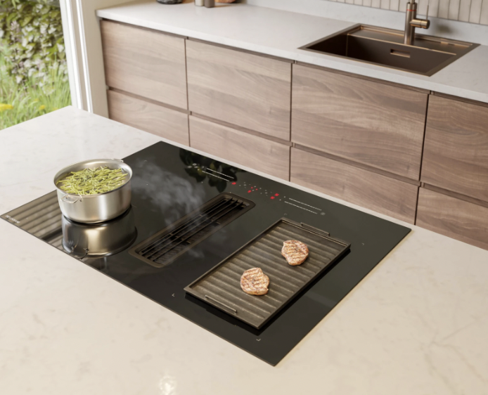 PRODUIT VENDU AVEC DEFAUTS D’ASPECTS : Multiples rayures. L'Inventum IKA8035 est une luxueuse plaque à induction encastrable sans rebord de 80 cm de large avec une hotte intégrée (flow-in) au milieu. Le fonctionnement est simple avec des boutons tactiles et des curseurs. L'appareil dispose de 4 zones de cuisson avec 15 réglages et boost par zone. Vous pouvez connecter les 2 zones de cuisson gauche ou droite avec le bouton tactile pont pratique. Vous pouvez utiliser des casseroles de n'importe quelle forme et taille sur les zones liées, comme une plaque de gril ou une rôtissoire. La table de cuisson est également équipée d'une limitation du temps de cuisson, d'une reconnaissance automatique des casseroles, d'un indicateur de chaleur résiduelle et d'une sécurité enfants. L'extracteur à flux continu économe en énergie avec 3 vitesses et un réglage Boost est équipé d'un moteur BLDC (sans balais) durable et de classe énergétique A. Grâce à son puissant débit d'air de 629 m³/h, cette table de cuisson à induction convient pour une grande cuisine ou une cuisine ouverte. cuisine. Vous n'avez pas à vous soucier des odeurs de cuisine dans votre maison. Vous pouvez régler vous-même la vitesse d'extraction ou laisser l'appareil choisir la bonne vitesse grâce à la synchronisation automatique. L'extraction est adaptée à l'extraction de l'air vers l'extérieur ou à la recirculation. Avec la recirculation, vous pouvez utiliser un filtre à charbon ou à plasma. Attention : le matériel nécessaire à l'extraction de l'air n'est pas fourni en standard avec cette table de cuisson. Fonction boost La fonction Boost de la table de cuisson fournit temporairement une puissance supplémentaire à une zone de cuisson. Pratique si vous souhaitez porter rapidement quelque chose à ébullition. Après un certain temps, le boost revient automatiquement à la puissance précédemment réglée. Fonction pont Utilisez la fonction pont pour utiliser la table de cuisson à induction de manière plus flexible. Utilisez le bouton pont pour relier les 2 zones de cuisson situées l'une derrière l'autre. Vous disposez ainsi d'une très grande surface de cuisson pour, par exemple, une plaque de grill ou une grande poêle. Sécurité supplémentaire Reconnaissance automatique des casseroles : La zone de cuisson s'éteint automatiquement s'il n'y a pas de casserole dessus. Indication de chaleur résiduelle : Si une zone de cuisson est encore chaude, vous verrez un « H » sur l'écran. Limitation du temps de cuisson : Si une zone de cuisson reste allumée pendant une longue période sans régler la puissance, elle s'éteindra automatiquement. Sécurité enfants : La table de cuisson à induction est verrouillée dans cette position. Fonction de synchronisation automatique La hotte intégrée à la table de cuisson dispose d'une fonction de synchronisation automatique pratique. L'appareil régule lui-même la vitesse d'extraction pour une zone de cuisson allumée ou si vous choisissez une puissance plus ou moins élevée. Moteur BLDC L'extraction de l'IKA8035 dispose d'un moteur BLDC, également appelé moteur brushless. Ce type de moteur est plus silencieux et plus durable. Capacité d'extraction La capacité d'extraction ou débit d'air maximum d'une hotte aspirante s'exprime en mètres cubes par heure (m³/h). L'IKA8035 avec 629 m³/h est très adapté à une cuisine grande ou ouverte. Étiquette énergétique L'extraction de l'IKA8035 a la classe énergétique A. Pour les hottes aspirantes, il existe des étiquettes allant de A++ à E, où un appareil avec A++ est le plus économe en énergie et E est le moins efficace. Recirculation ou évacuation de l'air vers l'extérieur Vous pouvez utiliser la hotte de cette table de cuisson avec extraction d'air vers l'extérieur ou avec recirculation. Les avantages de la recirculation sont : Vous n'avez pas besoin de faire un trou dans le mur pour extraire l'air de cuisson. C’est plus respectueux de l’environnement, car vous ne soufflez pas d’air chauffé à l’extérieur. Aucun air chaud n'est perdu, car l'air purifié dans le filtre est renvoyé dans la cuisine. ACCESSOIRES ET KIT NON INCLUS