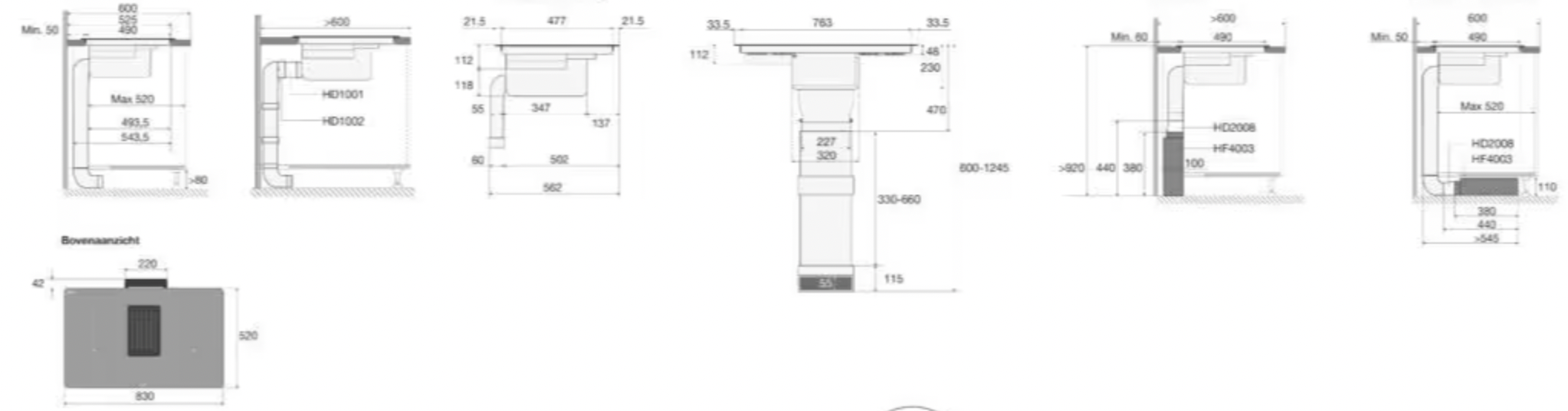 L'IKR4082M : une plaque à induction avec extraction intégrée. La table de cuisson est équipée d'une grille d'extraction moderne avec une grille d'extraction en fonte intégrée, élégante et affleurante. Avec les FlexZones des deux côtés, deux grandes surfaces de cuisson peuvent être créées, jusqu'à 38,5 cm de hauteur et 22,5 cm de largeur. Le contrôle coulissant permet de définir immédiatement le réglage correct très facilement, d'un simple mouvement de glissement naturel et simple. Le Pelgrim Hood-in-Hob se distingue en utilisant des techniques telles que AutoAir. Des techniques soigneusement étudiées, pour que vous puissiez continuer à bien cuisiner. AutoAir, par exemple, veille à ce que la position de la hotte soit automatiquement adaptée à la position de la plaque à induction. Lorsque la cuisson s'intensifie, l'extraction augmente automatiquement l'aspiration. Spécifications de l'unité d'extraction Capacité d'extraction jusqu'à 700 m³/h (évacuation vers l'extérieur) 9 vitesses d'extraction (dont réglage intensif) Convient pour le drainage vers l'extérieur Convient pour le recyclage : 1ère utilisation : commander HR0003 (kit de démarrage avec HF3006 ) filtre séparé : HF3006 (filtre à poussières fines) Convient au filtre PlasmaMade purificateur d'air ( commander HF4003 et HD2008 séparément) Niveau sonore 51 dB(A) – 66 dB(A) 1 x cassette de filtre à graisse multicouche en acier inoxydable, intégrée dans l'unité d'aspiration Classe énergétique A+ Valeur de connexion de l'appareil total : 7620 W (sans cordon / fiche) Fonctionnement de l'unité d'extraction FluxIn; grille d'entrée d'air en fonte encastrée et affleurante Commande coulissante sur plaque à induction Mode intensif ; capacité d'aspiration temporairement très élevée position de course; l'aspiration s'arrête après 15 minutes Indication de nettoyage du filtre à graisse et du filtre à charbon/poussières fines sur table de cuisson à induction Mode de nettoyage ; les commandes ne répondent pas pendant 1 minute afin que la table de cuisson puisse être nettoyée AutoAir : l'extraction s'ajuste automatiquement au mode induction Spécifications de la table de cuisson à induction 4 x zones flexibles (liées avant et arrière 38,5 x 22,5 cm) – 40 – 3 700 W 10 réglages par zone de cuisson (y compris fonction boost) Fonction Boost ; capacité d'induction temporairement très élevée Économe en énergie grâce aux zones d'induction A+ ; 2 litres d'eau bout 3 minutes plus vite qu'avec des zones à induction classiques Commandes de plaques à induction Fonctionnement par curseur par zone sur plaque à induction 4 minuteries avec fonction d'arrêt (jusqu'à 99 min.) FlexCuisine ; zones rectangulaires pouvant être reliées entre elles pour créer une grande surface de cuisson de 38,5 x 22,5 cm (avant et arrière) Fonction pause ; éteindre temporairement la table de cuisson tout en conservant la mémoire Fonction Boost par zone de cuisson ; puissance extra puissante temporaire Fonctions supplémentaires : maintien au chaud, fondre et bouillir Facilité de nettoyage Verre céramique; résistance supplémentaire aux chocs et aux rayures Nettoyage facile: 1 x grille d'entrée d'air FlowIn, encastrée 1 x cassette de filtre à graisse multicouche en acier inoxydable avec bac de récupération pour trop-plein d'eau (150 ml), amovible et lavable au lave-vaisselle 1 x réservoir de trop-plein (350 ml), accessible par le bas derrière la table de cuisson Sécurité Plaque à induction avec sécurité enfants et indicateur de chaleur résiduelle Limitation du temps de cuisson Arrêt de sécurité en cas de débordement d'eau extrême ou de surchauffe ACCESSOIRES ET KIT NON INCLUS