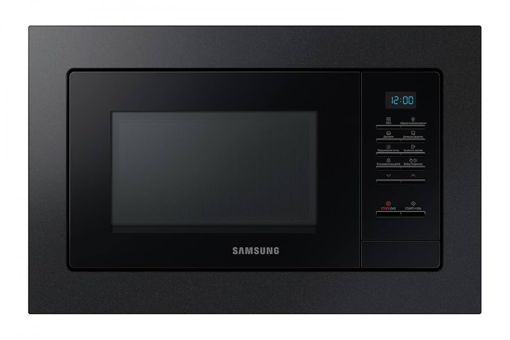 Le micro-ondes Samsung MS20A7013AB est un appareil encastrable de 20 litres au design noir élégant. Avec sa puissance de 850 W, il offre un réchauffage rapide et efficace de vos plats. Sa cavité en céramique émail assure une meilleure performance de cuisson et facilite le nettoyage. Il dispose de 6 niveaux de puissance pour s'adapter à tous vos besoins culinaires. Parmi ses fonctions pratiques, on retrouve le Power Defrost pour une décongélation rapide, la fonction Dessert pour préparer des douceurs comme des cookies ou des tartelettes, et la décongélation pain pour un pain frais en un rien de temps. Ce micro-ondes est également équipé d'un verrouillage enfant pour plus de sécurité. Son écran LED bleu et ses commandes électroniques assurent une utilisation intuitive. Avec ses dimensions compactes, il s'intègre parfaitement dans votre cuisine.