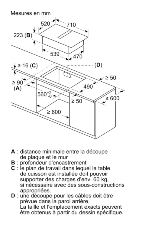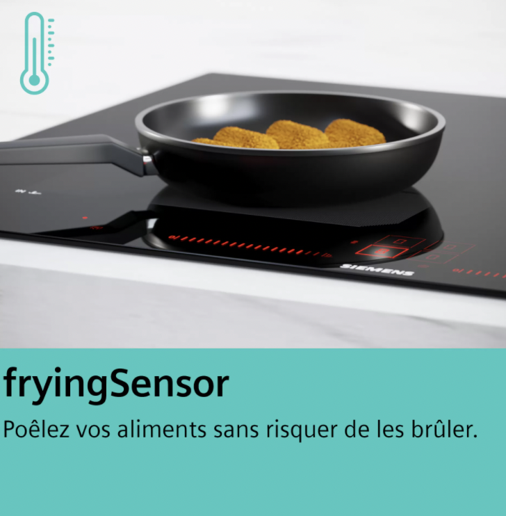 Une zone de cuisson qui s'agrandit pour vos grandes casseroles. Ressortez enfin vos grandes casseroles et poêles du placard ! Avec combiZone, vous pouvez combiner deux zones d'induction circulaires pour en former une plus grande. Bandeau de commande touchSlider : réglez la température sans bouton ni touche. Le bandeau touchSlider vous permet de régler la température des zones de cuisson en appuyant directement sur le niveau de puissance souhaité ou en glissant le doigt sur le bandeau de commande. ce bandeau plus concentré indique les différents niveaux de chauffe. A la fin de la cuisson, la table affiche la consommation d’électricité qui vient d’être effectuée. Un niveau sonore minimal sans compromis sur les performances d'extraction. La table avec hotte intégrée inductionAir Plus vous aide à être l'hôte parfait car elle garantit toujours un air frais sans odeur ni graisse avec un minimum de bruit. Ultra-facile à nettoyer. Votre table aspirante est ultra-pratique, mais aussi ultra-facile à nettoyer. Avec inductionAir Plus, vous disposez d’une triple protection contre les débordements, empêchant les liquides de pénétrer dans la hotte. En cas d'accident, pas de panique ! Les filtres à graisse passent sans problème au lave-vaisselle. Poêlez vos aliments sans risquer de les brûler. La cuisson à chaleur constante protège les vitamines et les nutriments de vos aliments, ainsi que le revêtement de vos poêles sur la durée. Avec les quatre niveaux de puissance précis de la technologie fryingSensor, vous êtes averti dès que la poêle a atteint la bonne température. Cette dernière est ensuite maintenue pour une cuisson uniforme absolument parfaite. PowerMove facilite les cuissons grâce aux préréglages des puissances. Il divise la zone combiInduction en 2 zones réglées à deux températures différentes. Puissance 9 à l’avant pour saisir, il suffit de faire glisser à l’arrière pour maintenir au chaud en position 1,5. Augmentez la puissance quand vous en avez besoin. Pas le temps d'attendre que ça chauffe ? Avec powerBoost, la puissance d'une zone à induction peut être augmentée de 50 %, ce qui permet de réduire le temps de chauffe de 35 %. Chaque minute de gagnée en cuisine vous laisse plus de temps à table pour savourer vos plats. Minuterie avec fonction d'arrêt de la zone de cuisson La minuterie avec fonction d'arrêt arrête la zone de cuisson sélectionnée en toute sécurité à la fin du temps indiqué Sécurité-enfants : contre les risques domestiques. La touche sécurité-enfants vous permet d'empêcher rapidement et facilement toute mise en marche non autorisée de la table de cuisson. Une seule pression sur la touche suffit pour bloquer toutes les fonctions de la table de cuisson. Pour débloquer, appuyez de nouveau sur la touche en la maintenant enfoncée quelques secondes. ACCESSOIRES ET KIT NON INCLUS