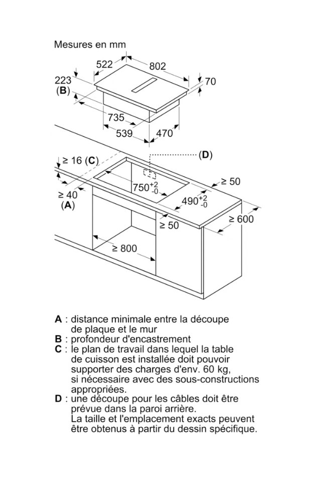 PRODUIT VENDU AVEC DEFAUTS D’ASPECTS : Plusieurs rayures sur le verre. Ultra-facile à nettoyer. Votre table aspirante est ultra-pratique, mais aussi ultra-facile à nettoyer. Avec inductionAir Plus, vous disposez d’une triple protection contre les débordements, empêchant les liquides de pénétrer dans la hotte. En cas d'accident, pas de panique ! Les filtres à graisse passent sans problème au lave-vaisselle. Le bandeau touchControl Ce bandeau de commande permet de contrôler très précisément chacune des quatre zones de cuisson. Il suffit de sélectionner la zone choisie et d’appuyer légèrement sur le + ou – pour arriver à la température souhaitée. Augmentez la puissance quand vous en avez besoin. Pas le temps d'attendre que ça chauffe ? Avec powerBoost, la puissance d'une zone à induction peut être augmentée de 50 %, ce qui permet de réduire le temps de chauffe de 35 %. Chaque minute de gagnée en cuisine vous laisse plus de temps à table pour savourer vos plats. Minuterie avec fonction d'arrêt de la zone de cuisson La minuterie avec fonction d'arrêt arrête la zone de cuisson sélectionnée en toute sécurité à la fin du temps indiqué. Sécurité-enfants : contre les risques domestiques. La touche sécurité-enfants vous permet d'empêcher rapidement et facilement toute mise en marche non autorisée de la table de cuisson. Une seule pression sur la touche suffit pour bloquer toutes les fonctions de la table de cuisson. Pour débloquer, appuyez de nouveau sur la touche en la maintenant enfoncée quelques secondes. powerInduction de Siemens : rapide, sûre et facile à nettoyer. Aussitôt chaud. Aussitôt froid. Découvrez les avantages de la technique powerInduction de Siemens. La chaleur est transmise directement aux casseroles et à leur contenu à l'aide de bobines d'induction, sans que le plan de cuisson ne chauffe. Ce qui signifie pour vous : des temps de cuisson courts, une sécurité accrue et un nettoyage de la plaque facilité. Un niveau sonore minimal sans compromis. La table avec hotte intégrée inductionAir Plus vous aide à être l'hôte parfait car elle garantit toujours un air frais sans odeur ni graisse avec un minimum de bruit. ACCESSOIRES ET KIT NON INCLUS