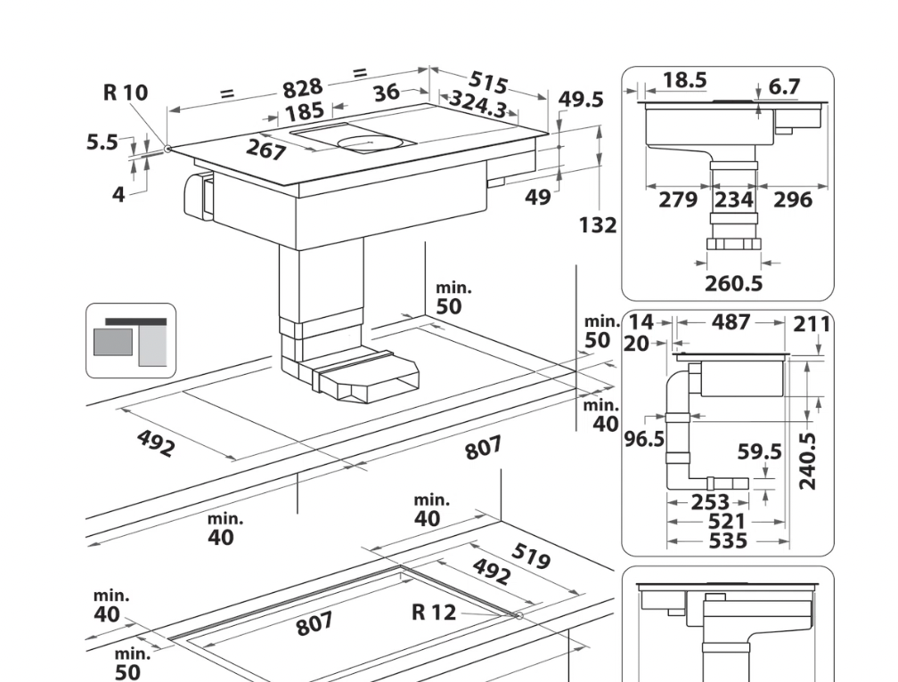 Largeur minimale de niche (mm): 807