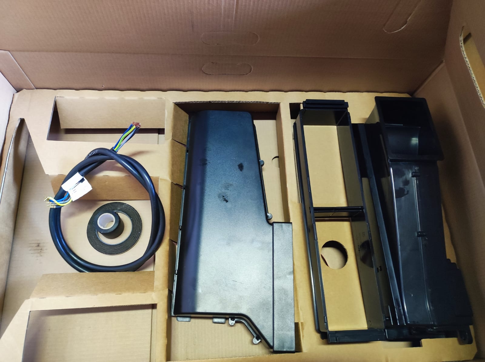 Whirlpool WVH 92 KF KIT/1 - Plaque à induction avec hotte intégrée cm. 83 - vitrocéramique noire Une technologie moderne qui chauffe la casserole au lieu de la table de cuisson, de sorte que moins d'énergie est gaspillée et que des résultats de cuisson parfaits sont obtenus. 4 foyers à induction. Curseur intuitif pour un contrôle sans effort de votre appareil. Accès direct avec curseurs Une nouvelle interface utilisateur avec des curseurs individuels par zone de cuisson. Chaque curseur est affecté à sa position correspondante sur la surface de la table de cuisson pour rendre son utilisation aussi simple que possible. Technologie d'induction - Cuisson plus rapide et plus économe en énergie L'induction chauffe la poêle, pas la table de cuisson, donc moins de 10 % de l'énergie est perdue dans l'environnement. Design contemporain Nos plaques de cuisson sont conçues pour obtenir les meilleurs résultats de cuisson avec un design élégant. L'élégant design Filo des plaques de cuisson encastrables rend désormais le nettoyage encore plus facile. Garder au chaud – Prenez toujours un repas chaud La fonction maintien au chaud maintient le plat au chaud pendant la préparation du reste du repas. Commande frontale Contrôle total pendant la cuisson. Accès facile aux commandes intuitives et idéalement situées sur le panneau avant, rendant la cuisine encore plus facile. Slider - Cuisine intuitive La commande tactile intuitive vous permet de régler la puissance par zone de cuisson, tandis qu'un simple écran indique en un coup d'œil quelles zones de cuisson sont en fonctionnement. Gestion de l'énergie - Très économe en énergie La fonction Power Management permet de régler la puissance maximale de la table de cuisson pour éviter tout risque de surcharge de la maison. Boosters Cuisinez en un rien de temps avec la fonction Booster 3Kw Booster - Profitez des plats les plus savoureux Cette table de cuisson Whirlpool dispose d'un booster de 3Kw pour chauffer vos plats encore plus rapidement. Spécifications techniques de la table de cuisson Nombre de zones d'induction : 4 Minuterie : oui Emplacement du panneau de commande : avant Code EAN : 8003437636752 Version : intégrée Système d'exploitation : électronique Longueur du câble de connexion (cm) : 165 Absorption de courant (A) : 32,5 Indicateur de tension : oui Indicateurs de chaleur résiduelle : Individuel Interrupteur marche/arrêt : oui Spécifications techniques de la hotte aspirante Peut être utilisé en version aspiration avec évacuation externe (tuyaux à acheter séparément) ou filtration avec recirculation interne. (Le produit est fourni avec tout le nécessaire pour l'installation dans le filtre) Capacité d'aspiration minimale : 180 m3/h Capacité d'aspiration maximale : 410 m3/h Capacité d'aspiration en mode intensif ou boost : 600 m3/h Bruit minimum : 45 dB(A) pour 1 pW Bruit maximum : 63 dB(A) pour 1 pW Niveau sonore en mode intensif ou boost : 71 dB(A) re 1 pW Conception Nombre de zones de cuisson électriques : 4 zone(s). Puissance de la zone de cuisson 1 : 1200 W Puissance zone de cuisson 2 : 2300 W Puissance zone de cuisson 3 : 2300 W Puissance de la zone de cuisson 4 : 1200 W Couleur du produit : Noir Placement des appareils : intégré Mesure de la largeur de la table de cuisson : 83 cm Type de table de cuisson : Plaque à induction Type de surface supérieure : Vitrocéramique Nombre de zones de cuisson : 4 zone(s). Ergonomie Type de commande : Tactile Position de contrôle : Avant Écran intégré Horloge intégrée Type de montre : Électronique Minuteur Type de minuterie : numérique Indicateur de chaleur résiduelle Sécurité Sécurité enfants ACCESSOIRES ET KIT NON INCLUS
